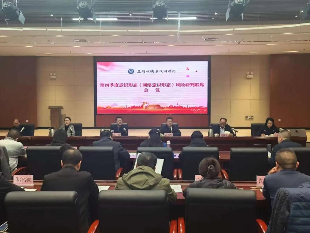 12月18日下午,学院召开2025年第四季度意识形态(网络意识形态)风险研判联席会议。党委书记杨彤出席会议并讲话。学院党委委员、纪委书记张雪冰,党委委员、副院长黄世谋,院长助理李启松,党委委员、宣传和统战部部长王静宇,各院部党总支书记、各联席部门负责人参加会议。会议由党委副书记高超杰主持。