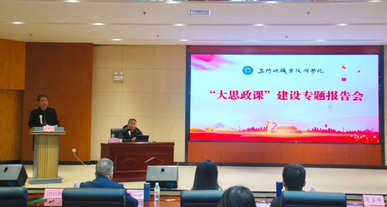 为深入学习贯彻党的二十届四中全会精神,全面落实立德树人根本任务,持续深化“大思政课” 建设内涵,创新推进思政课实践教学改革路径,根据《中共三门峡职业技术学院委员会关于开展第二届“大思政课”建设暨实践教学成果展示活动的通知》,12月19日下午,学院特邀西安电子科技大学马克思主义学院夏永林教授,河南师范大学马克思主义学院二级教授蒋占峰,在应工校区图书馆一楼报告厅作专题报告。学校党委委员、宣传和统战部部长王静宇,学工部、教务处、科研处、校团委负责人,各院部主管教学科研工作副院长,三门峡市大中小学思政课一体化虚拟教研室成员及全体专兼职思政课教师参加报告会,报告会由马克思主义学院负责人主持。
