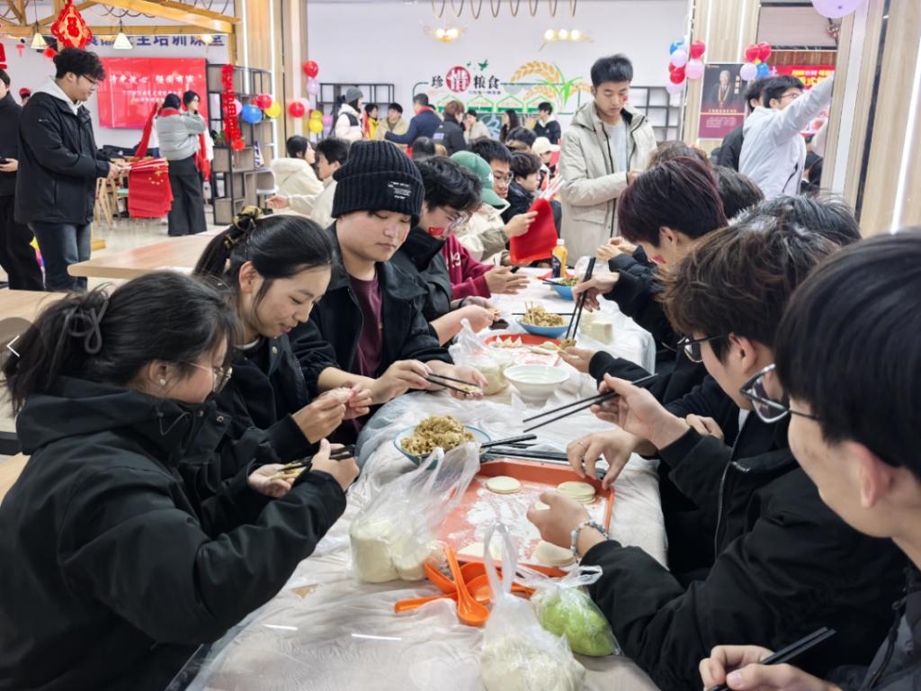 活动在师生共唱《我和我的祖国》中拉开序幕,激昂的歌声展现了学子昂扬向上的精神风貌。随后,校领导与师生们围坐在一起,动手包饺子、聊生活,现场笑语盈盈、暖意融融。大家在协作中体验冬至传统习俗,也深切感受到学院大家庭的温暖与团结。