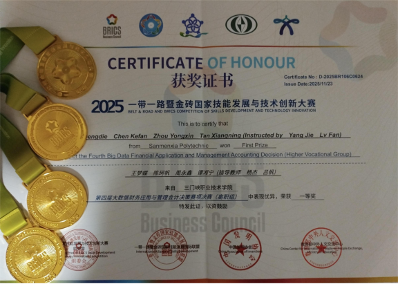 近日,2025年“一带一路”暨金砖国家技能发展与技术创新大赛之第四届大数据财务应用与管理会计决策赛项全国总决赛圆满落幕。我院数字经济与管理学院大数据与会计专业学生王梦蝶、陈珂帆、谭湘宁、周永鑫,在教师杨杰、吕帆的精心指导下,凭借扎实的专业能力和良好的团队协作,从全国1950余支参赛队伍中脱颖而出,以北区第十九名晋级全国总决赛,并最终以全国第九名的优异成绩荣获一等奖。学院同时获评全国“最佳组织奖”,展现出在大数据财务与管理会计融合育人方面的扎实成效。
