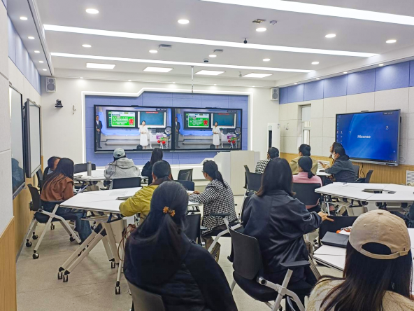 为最大化比赛的辐射效应,现场决赛同步启用了线上与线下“双观摩室”,分设线下集中观摩室和线上直播平台,共同构成立体化的教学研修第二课堂。青年教师在线下观摩室沉浸式学习,通过高清大屏实时观赛,并围绕参赛作品的教学设计、课堂互动、信息化手段应用等即时展开研讨。“即时观摩、即刻研讨”的模式,打破了时空限制,将竞技比赛延伸为覆盖全院的教学研修活动,实现了竞赛资源向教师发展资源的高效转化。近年来,学院持续推动教学竞赛从“少数团队参赛”向“全员参与研讨”的深度转变,本届“双观摩室”正是这一理念的集中体现。